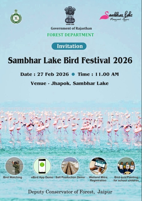 सांभर झील में 27 फरवरी को होगा बर्ड फेस्टिवल का आयोजन — विद्यार्थी, पर्यटक एवं पक्षी प्रेमी देख सकेंगे परिंदे