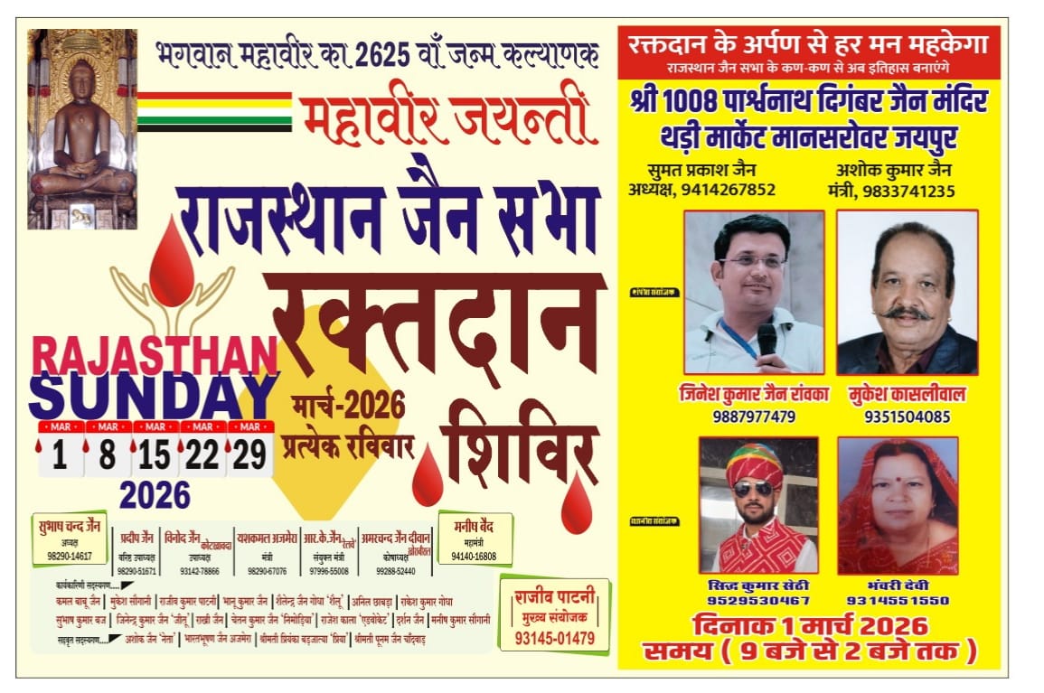 108 स्थानों पर विशाल रक्तदान सेवा अभियान, 2625 यूनिट रक्त संग्रह का लक्ष्य*