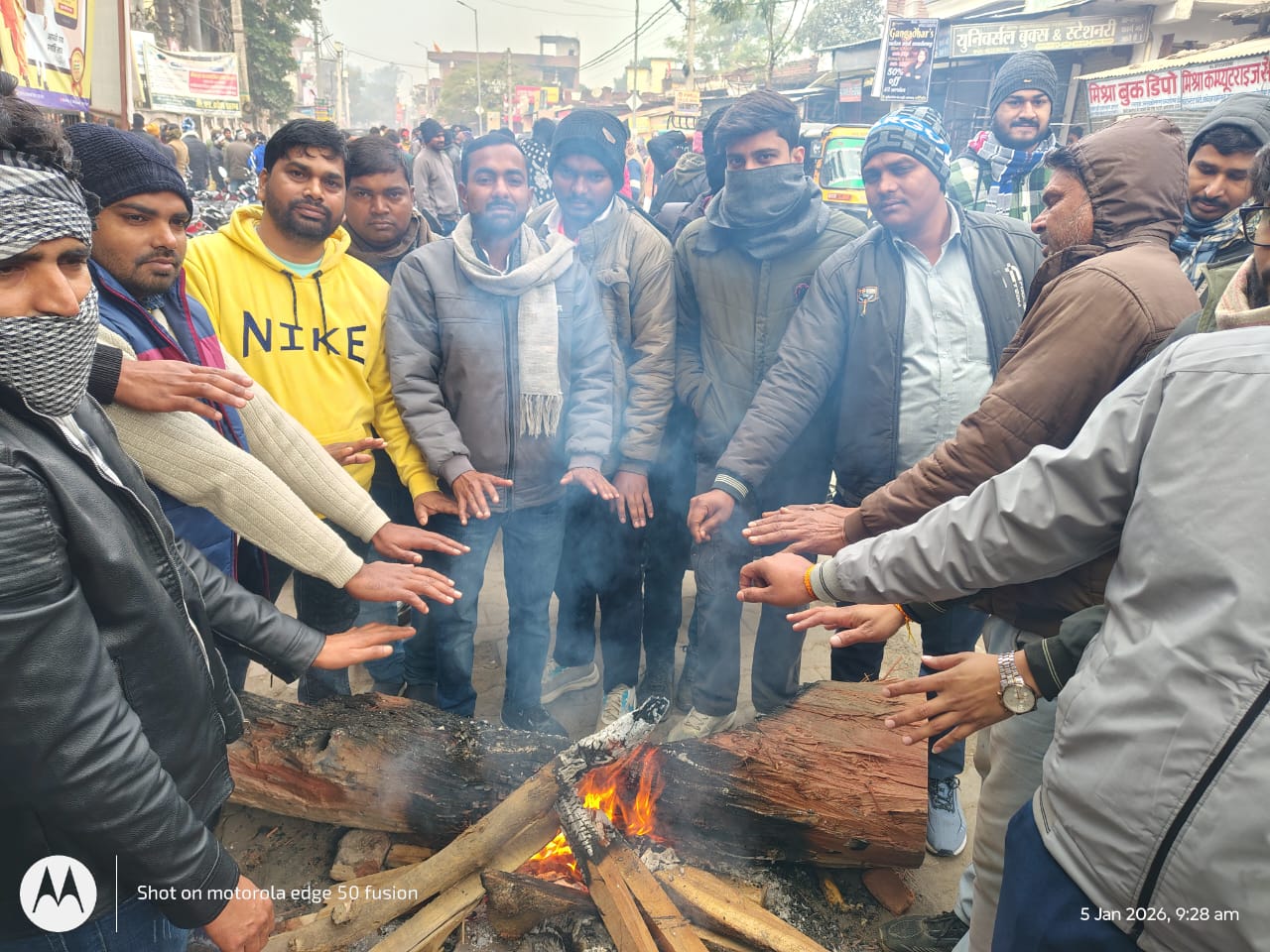 ठंड से राहत की पहल: आसपुर देवसरा तृतीय के जिला पंचायत प्रत्याशी चंदन सिंह पटेल ने पट्टी में जलवाया अलाव