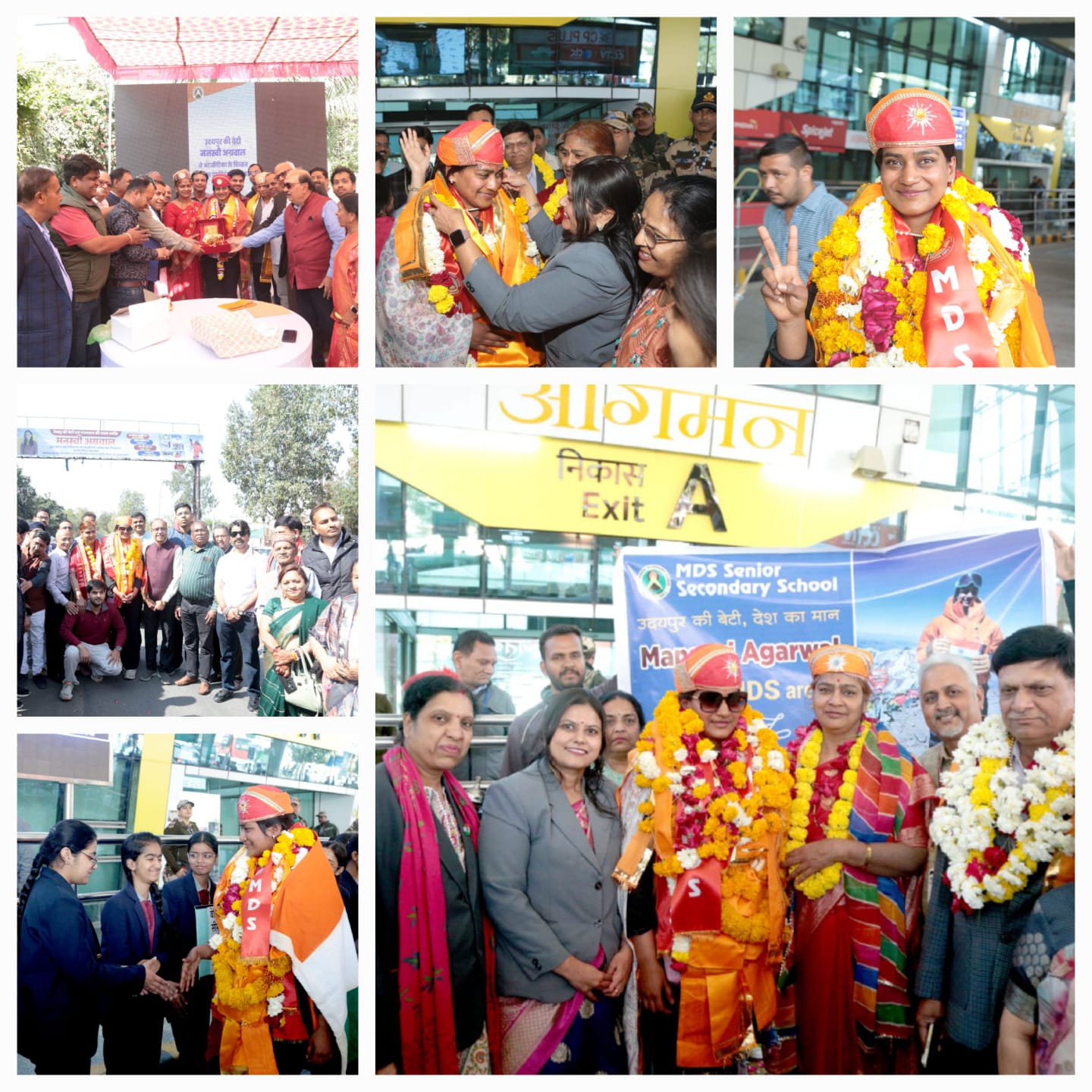 उदयपुर की पर्वतारोही बेटी मनस्वी अग्रवाल उदयपुर पहुंची