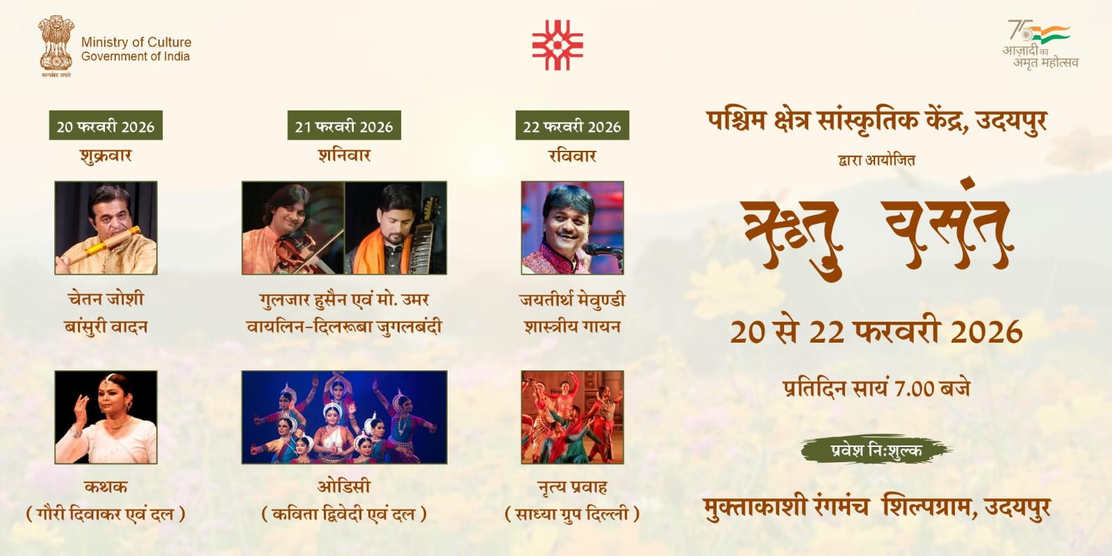 पश्चिम क्षेत्र सांस्कृतिक केंद्र, उदयपुर 20 फरवरी से शिल्पग्राम में छाएगा ‘ऋतु वसंत’ का का जादू - 22 फरवरी तक क्लासिकल गीत-संगीत की गूंजेंगी स्वर लहरियां