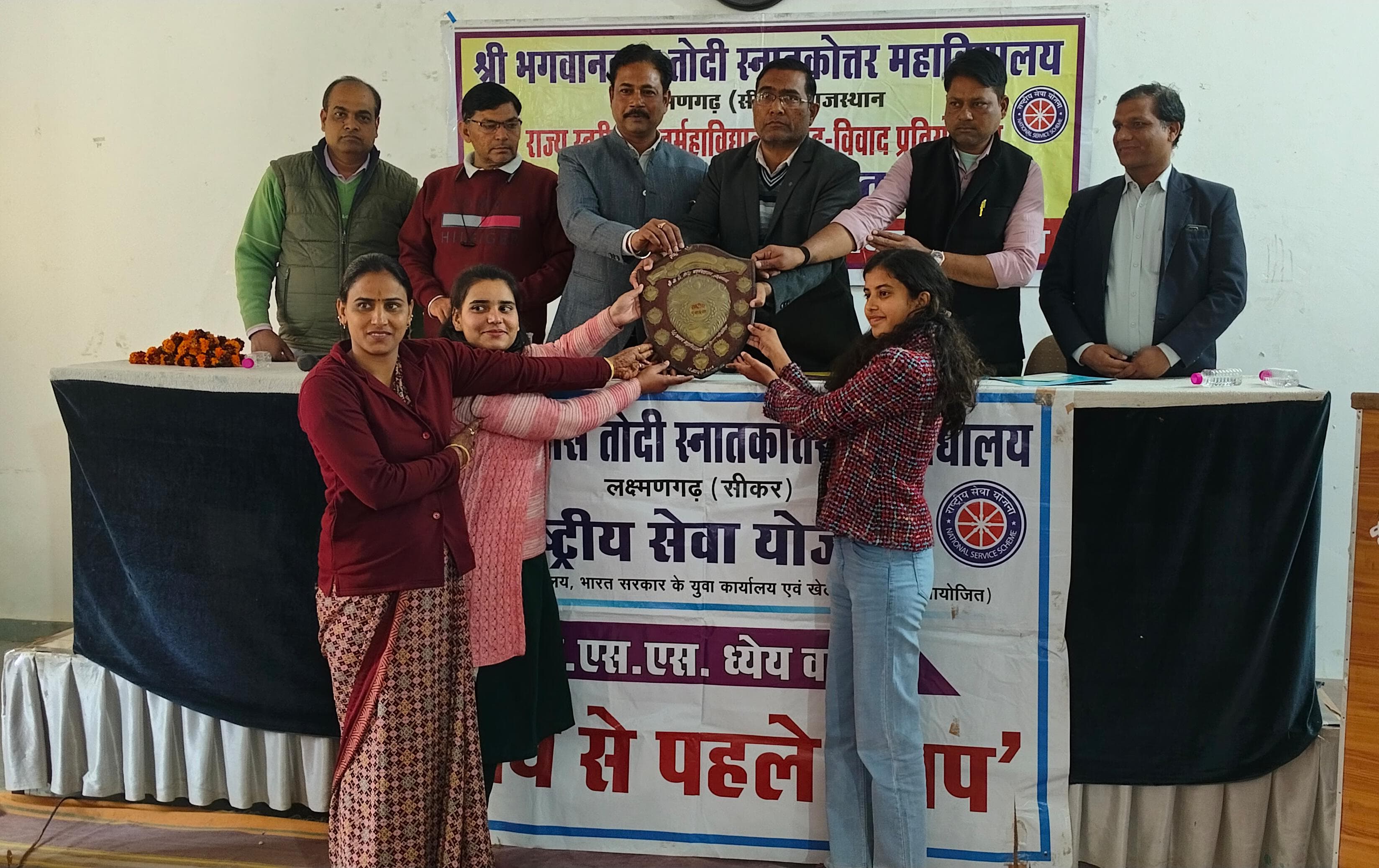 श्री भगवानदास तोदी स्नातकोत्तर महाविद्यालय लक्ष्मणगढ़ में चल रहे एनएसएस के सात दिवसीय विशेष शिविर के अंतिम दिन समापन समारोह का आयोजन